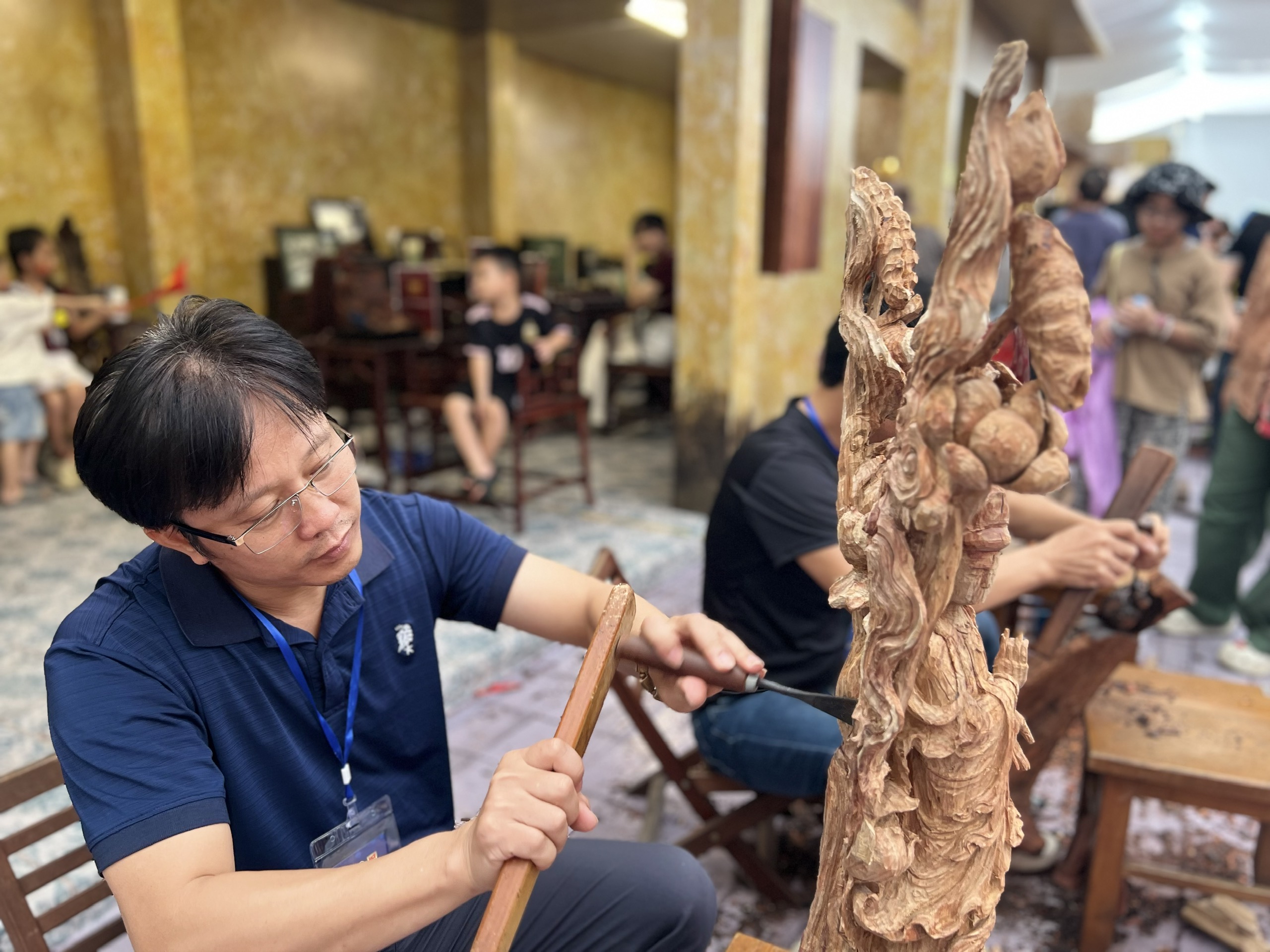 Còn nghệ nhân ưu tú Đỗ Văn Cường - xã Thư Lâm (huyện Đông Anh cũ) cho biết: “Tôi mong muốn được tham gia sự kiện để giới thiệu về nghề chạm gỗ Thiết Úng nổi danh của quê hương. Chúng tôi được lớn lên trong không gian làng nghề vang tiếng đục, được trình diễn với du khách, tôi và anh em rất vui”.