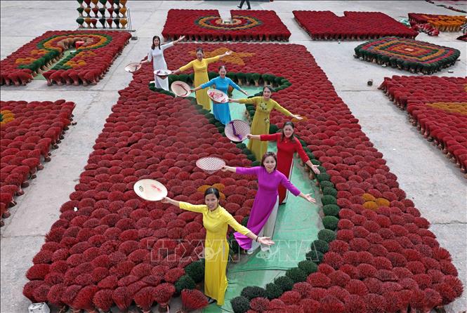 Quảng Phú Cầu không chỉ sản xuất hương mà còn tạo nên không gian thị giác rất riêng. Những bó chân hương đỏ xếp thành hình cờ Tổ quốc hay bản đồ Việt Nam đã trở thành điểm chụp ảnh quen thuộc, được các trang báo quốc tế chia sẻ rộng rãi. Nhờ đó, làng nghề bước đầu xây dựng được hình ảnh ấn tượng trong mắt khách tham quan.
