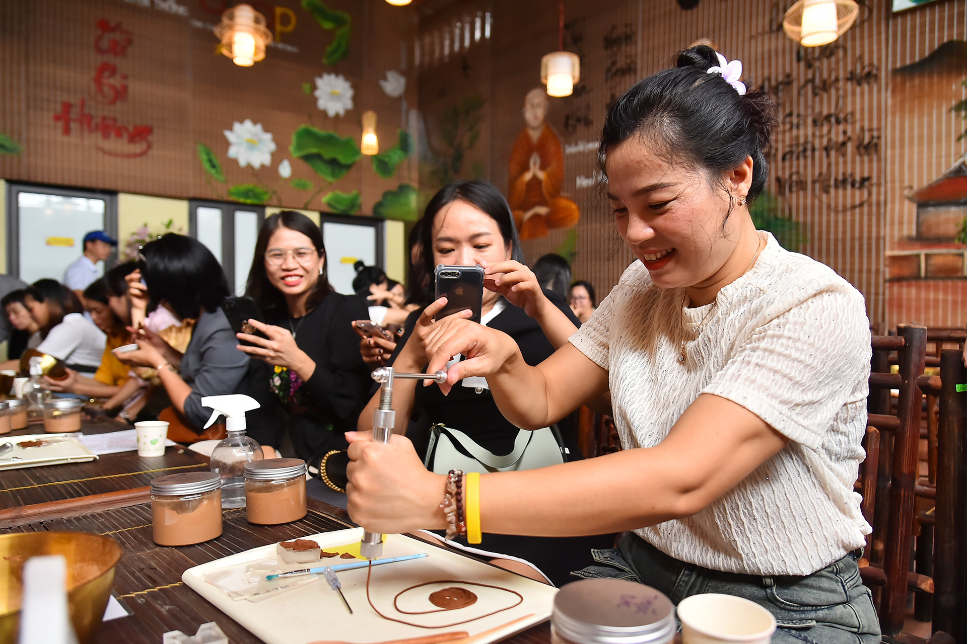 Là người đầu tiên mở dịch vụ trải nghiệm làm hương tại xưởng, chị Nguyễn Thu Phương, chủ cơ Từ Bi Hương chia sẻ: “Khi dịch vụ lưu trú còn chưa nhiều, tôi quyết định chinh phục khách hàng bằng chất lượng sản phẩm và quy trình làm hương, se hương. Vì thế, đến nay tôi có 7 sản phẩm OCOP, trong đó có 2 sản phẩm 4 sao. Đến xưởng, khách không chỉ được học cách làm hương, mà họ còn có thể mua các loại hương vòng, hương nén đến các loại nụ trầm nhiều hương vị. Vì thế, khách thấy vui, nhiều người trở lại”.