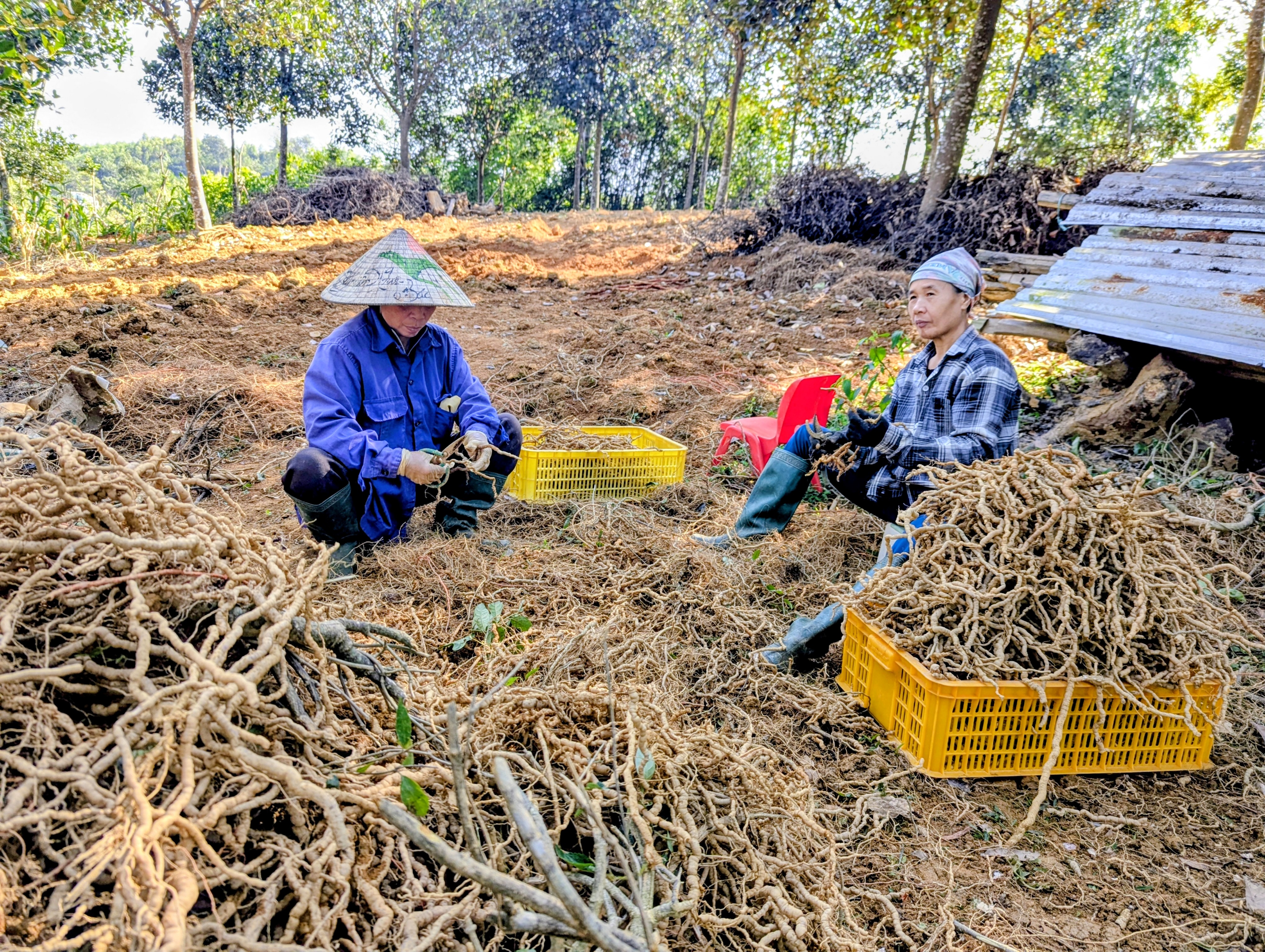 Trước đây mảnh đồi của gia đình ông Đỗ Văn Tuấn tại xã Thái Hòa, tỉnh Phú Thọ dùng để trồng sắn và các loại cây hoa màu có giá trị kinh tế thấp. Năm 2020, được sự hỗ trợ kỹ thuật và cam kết đầu ra của Công ty Cổ phần chế biến nông sản Minh Phúc An, ông Đỗ Văn Tuấn đã mạnh dạn chuyển đổi sang trồng cây ba kích trên diện tích 1 ha. Ông Tuấn cho biết: “So với các loại cây khác, việc trồng cây ba kích không khó, chi phí giống và phân bón không lớn, mà lại ít tốn công chăm sóc, trong khi vẫn có thể trồng dưới tán cây khác như cây mít, trám đen… mà vẫn sinh trưởng, phát triển tốt.