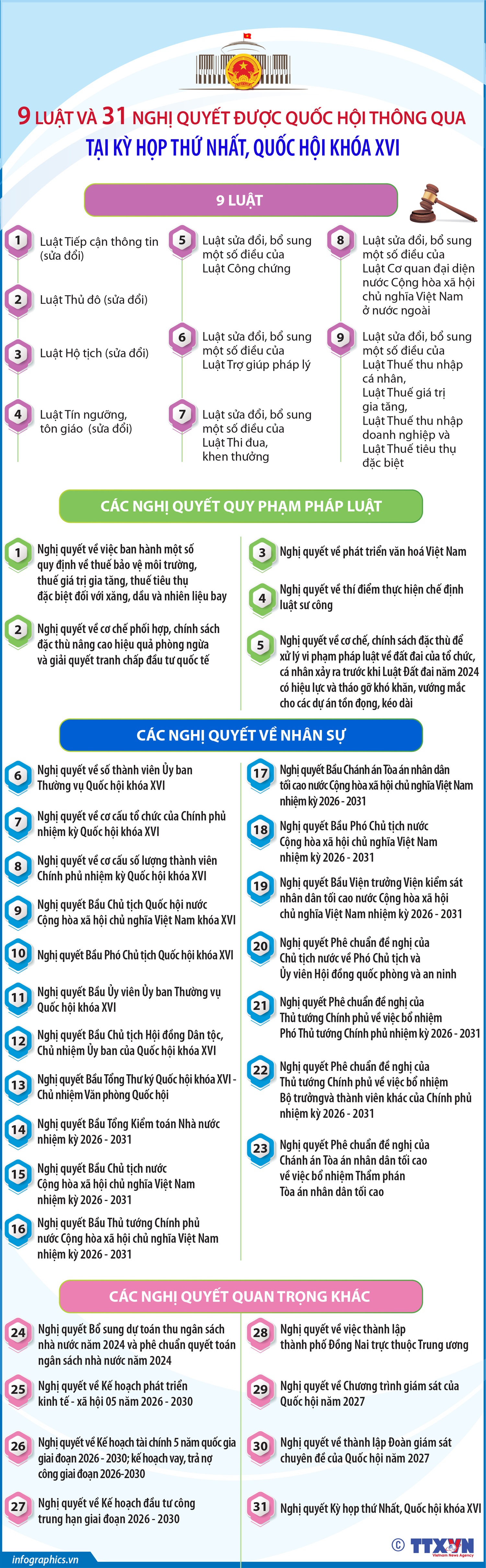 Thông tin về 9 luật và 31 nghị quyết được Quốc hội thông qua tại Kỳ họp thứ nhất, Quốc hội khóa XVI
