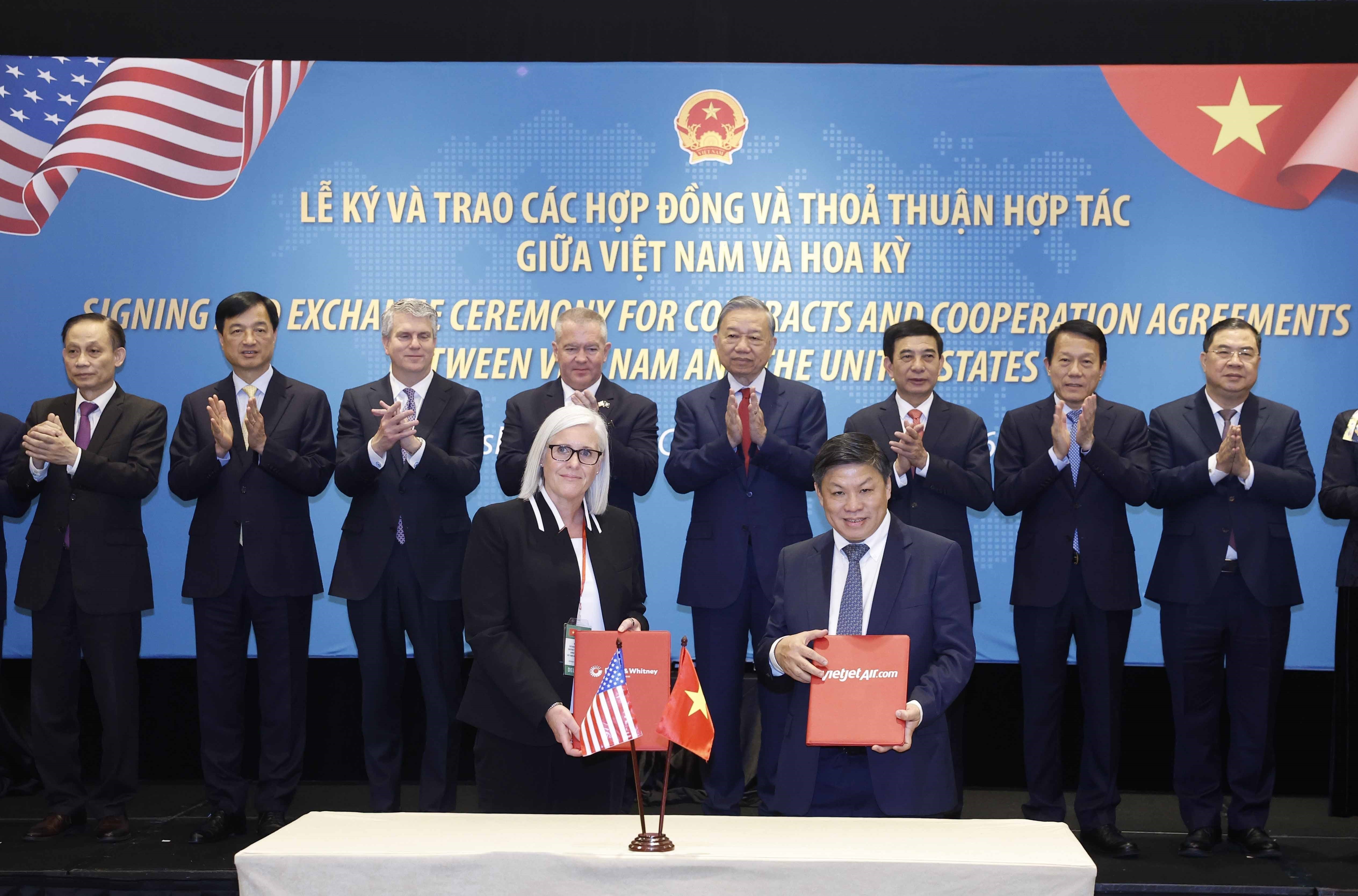 Chiều tối 18/2 theo giờ địa phương, tại Washington D.C. (Hoa Kỳ), Tổng Bí thư Tô Lâm đã chứng kiến lễ ký và trao các hợp đồng, thỏa thuận hợp tác trong các lĩnh vực trọng điểm như khoa học công nghệ, chuyển đổi số, hàng không và y tế. Tổng giá trị của các văn kiện được trao lên tới 37,2 tỷ USD, thể hiện những cam kết mạnh mẽ và quyết liệt của các đối tác trong bối cảnh quan hệ hai nước bước vào thời kỳ phát triển mới.