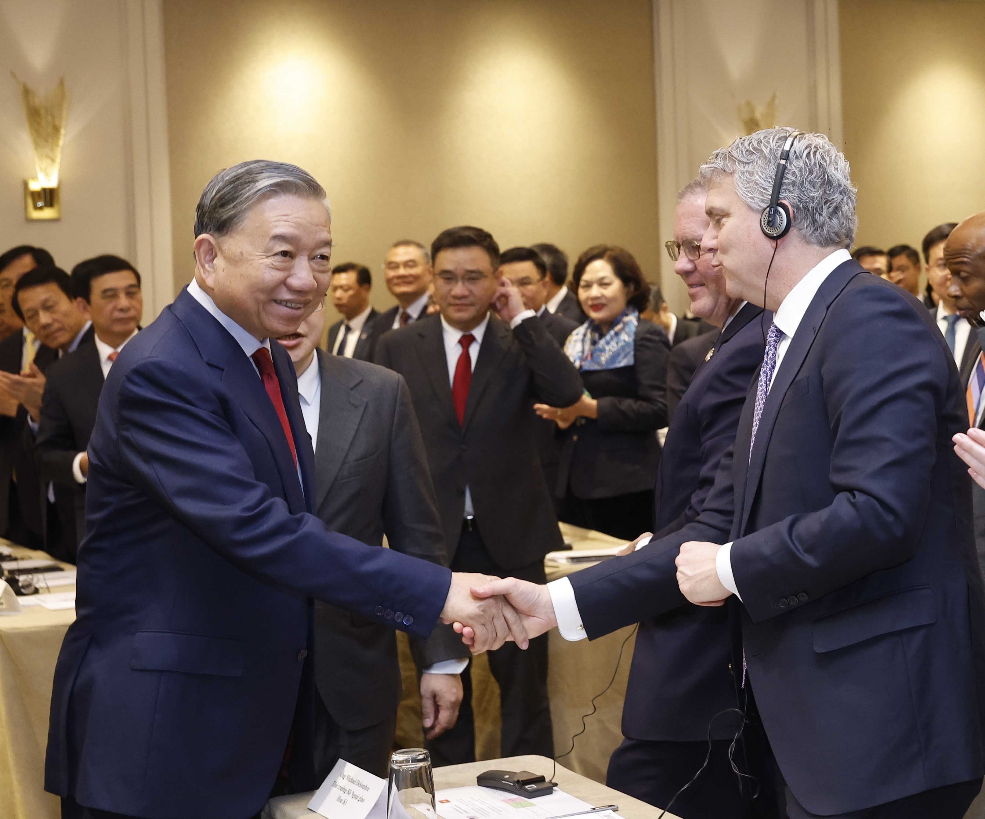 Đón Tổng Bí thư Tô Lâm và đoàn tại sân bay quân sự Andrews có: Đại sứ Việt Nam tại Hoa Kỳ Nguyễn Quốc Dũng; Đại sứ, Trưởng phái đoàn Việt Nam tại Liên hợp quốc Đỗ Hùng Việt; Thứ trưởng Bộ Ngoại giao Đặng Hoàng Giang; Tổng Lãnh sự Việt Nam tại San Fransisco Hoàng Anh Tuấn; Tổng Lãnh sự Việt Nam tại Houston Hoàng Thùy Dương, cùng cán bộ, nhân viên Đại sứ quán.