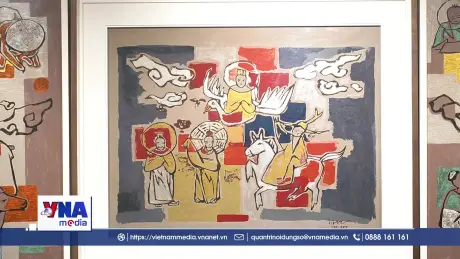 Vẫn là miền núi trong hành trình sáng tạo nghệ thuật kéo dài nhiều thập kỷ, nhưng với bộ tranh ‘Mùa Xuân biên cương’, họa sĩ Đỗ Đức xuất hiện với một dấu ấn khác qua chất liệu sơn mài.;